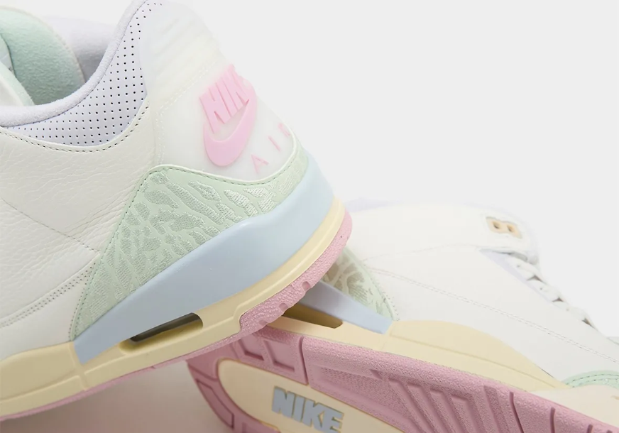 Jordan, ilk kez 1988 yılında Tinker Hatfield imzasıyla tanıtılan Air Jordan 3 modelinin bahar temalı yeni versiyonunu duyurdu. "Spring Is in the Air" takma adıyla piyasaya sürülecek olan model, klasikleşmiş "Nike Air" topuk logolu tasarımını korurken, bu kez kirli beyaz deri üzerine işlenmiş pastel yeşil, mavi, mor ve pembe tonlarıyla güncelleniyor.