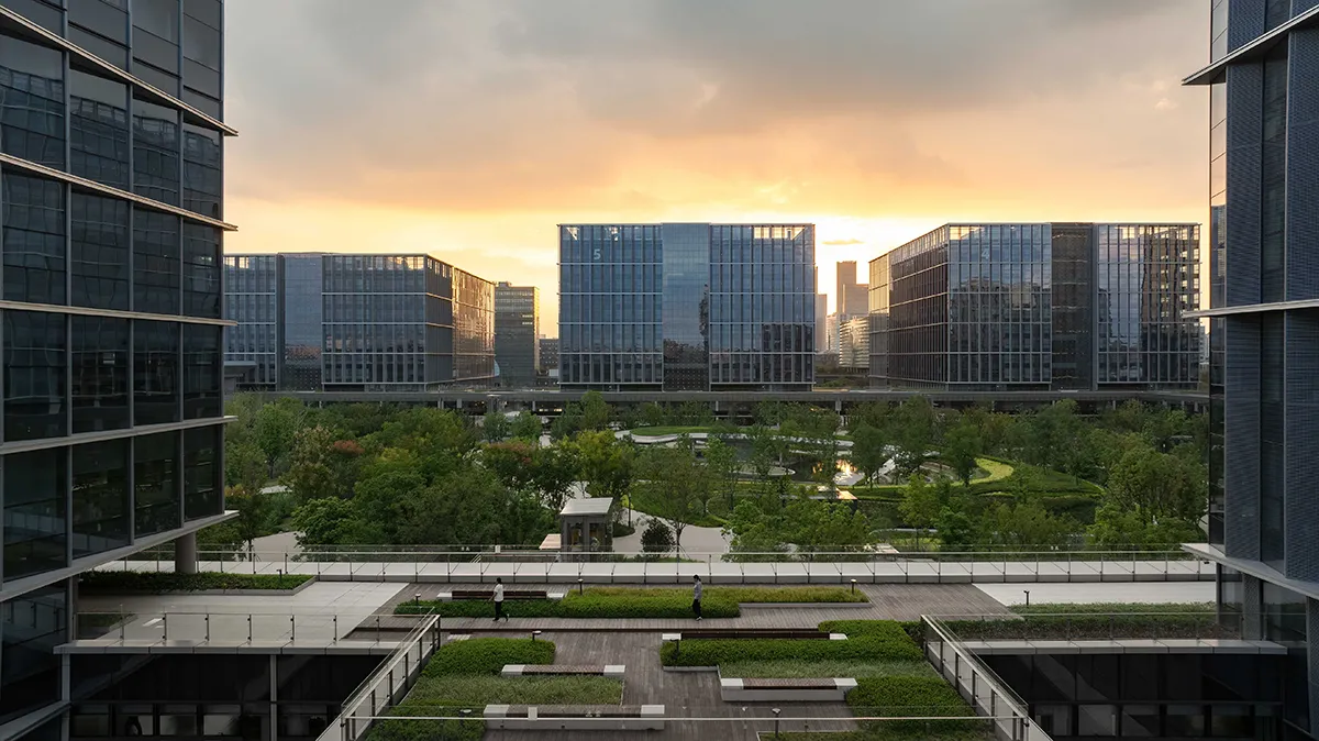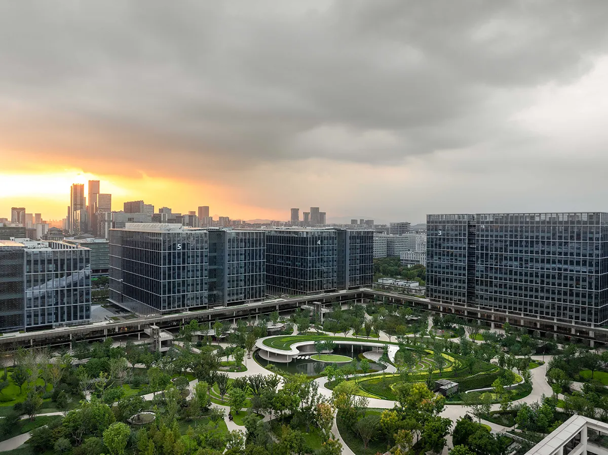 Çin'in teknoloji devi Alibaba için tasarlanan Xixi Kampüsü (Park C), geleneksel ofis konseptlerini alt üst ediyor. Tam 26 futbol sahası büyüklüğündeki bu yeşil vaha, çok katlı bir podyumun üzerinde adeta yükselen bir ekosistem olarak karşımıza çıkıyor.